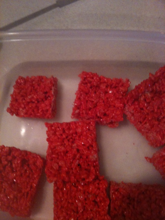 Red Rice Krispie Treats for Snacks!! Yummy!! They were a big hit.